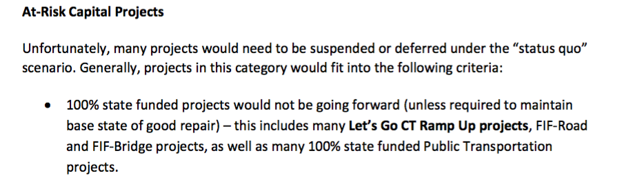 A December report by the Office of Policy and Management showed Connecticut will only be able to preserve $3.7 billion in bonding going forward, but did not indicate what projects that bonding would finance.
