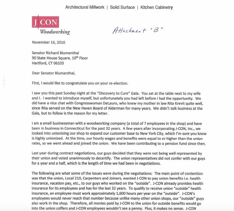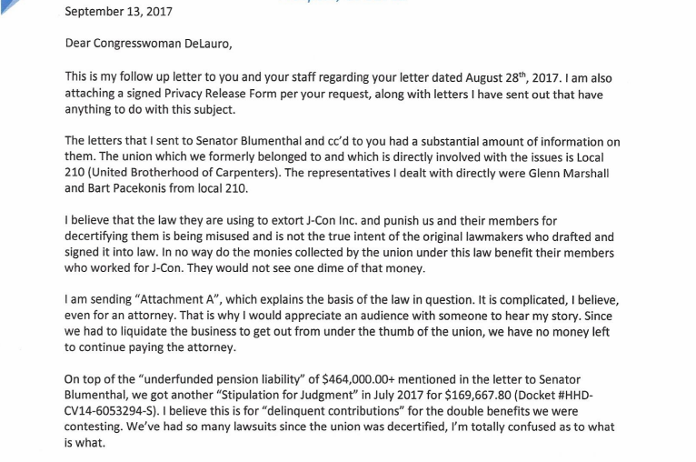 After paying into the pension fund for 30 years, J-Con was now being sued for $464,000 for its portion of the union’s underfunded pension liability. They were also sued for an additional $169,667.80 for union health benefits, even though Mark and Hilary already paid better employee benefits than the union demanded.