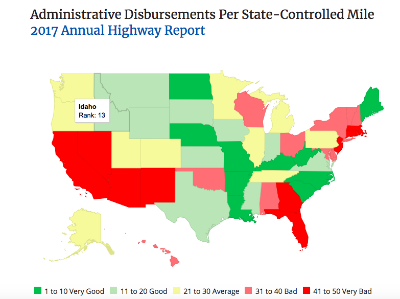 “We don’t cherry pick data or do hidden analysis,” Feigenbaum said. “All of the data is self-reported by the states. FHWA has detailed instructions for how the data is reported. It is not up to the states’ interpretation. So either the state has been correctly reporting data and it ranks 50th in Administrative costs or it has been incorrectly reporting data and it ranks higher.”