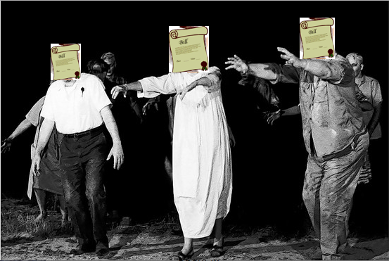 Like the slow stumble of a George Romero-style zombie, these bills-in-need-of-brains find their way into committee hearings, moan and gnash their teeth, and eventually die off only to rise again from the dead the following year.