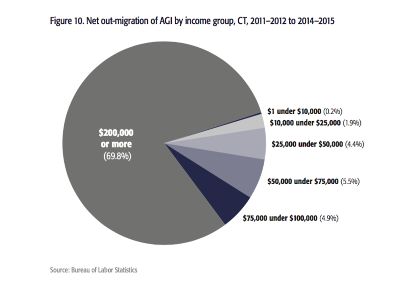 - Connecticut saw an outmigration of individuals making over $200,000 per year, which coincided with the 2011 and 2015 tax increases. High-income earners made up nearly 70 percent of the people leaving Connecticut during those times, according to the study.