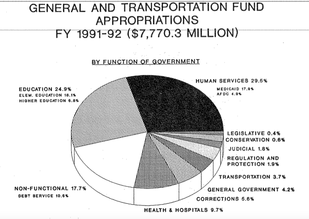 - Welfare was the fastest area of spending growth after Connecticut passed the income tax. State spending on human services like Medicaid, the Department of Social Services and Temporary Assistance for Needy Families grew $1 billion, or 30 percent, in the three years following the income tax, according to the study. Medicaid spending alone grew 25 percent between 1991 and 1994, which amounts to $539 million in today’s dollars. During the years of state spending growth after the income tax, however, poverty in Connecticut actually increased from 6.8 percent in 1990 to 10.8 percent in 1994. Connecticut’s poverty level has hovered around 10 percent ever since. Connecticut currently spends $2.5 billion on Medicaid, which is 27 percent of the state’s “fixed costs.” Human services in general, makes up 20 percent of the state budget, which is markedly lower than the nearly 30 percent spent on human services in 1991.