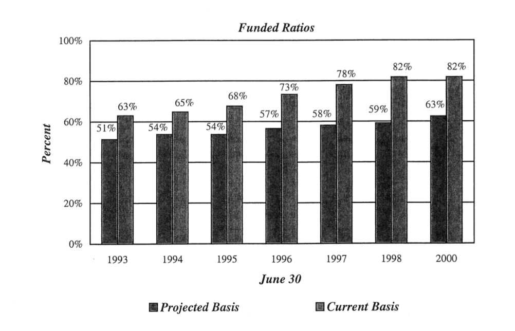 Even after all the mismanagement by both union leaders who were supposed to act in the best interest of their members and lawmakers who were supposed to act in the best interest of taxpayers, the State Employee Retirement System was 63 percent funded in the year 2000.