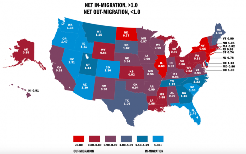 “Strictly speaking, AGI (adjusted gross income) does not migrate; people do,” wrote study author and Director of Tax Policies Studies for Cato Chris Edwards. “Nonetheless, saying income is ‘migrating’ is rough shorthand for saying that the earning power of households is moving between states.”