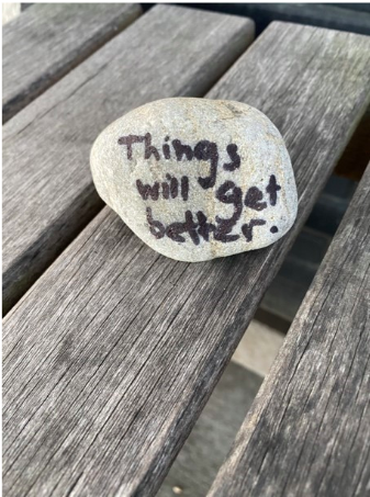 Tiny painted rocks with words of encouragement can be found on benches and tables throughout the historic Guilford green. These little rocks are a beam of light during a time of uncertainty and insecurity for many. Things most certainly will get better. Thank you, anonymous painter!
