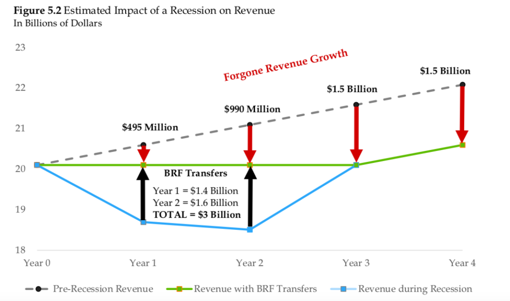 “The forgone revenue growth has a permanent impact on the structural imbalance as fixed cost expenditures continue to grow while revenue remains flat for three years,” the OFA wrote in its Fiscal Accountability Report. “Enduring solutions will be needed to address this ongoing problem, which cannot be fixed through temporary measures like use of the budget reserve fund.”