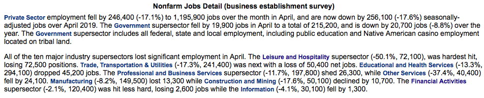 The combined loss of jobs between March and April is 288,400 and the CT DOL has received 535,000 applications for unemployment to date, equal to 31.4 percent of the state’s workforce.