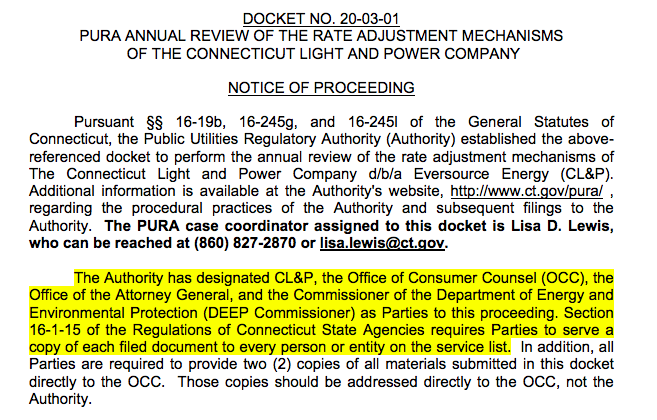 According to the PURA docket, the Office of the Attorney General was party to the hearing in which Eversource received approval to raise its rates. The announcement of a rate adjustment hearing was posted in October of 2019, according to the docket.