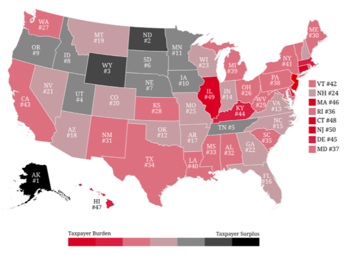 The total debt, which amounts to $50,700 per taxpayer in the state, is based on Connecticut’s 2019 financial reports and does not include any potential fallout from 2020’s pandemic and economic downturn which could worsen Connecticut’s pension investment returns and increase its unfunded liabilities.