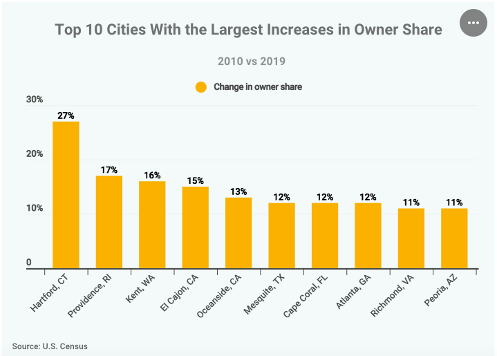The report offers no specifics for why one city saw an increase in renters while the other saw an increase in homeowners.
