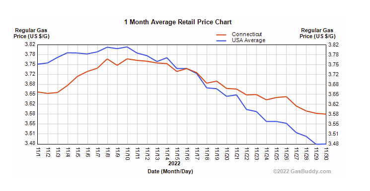 Meanwhile, gas prices in Connecticut and nationally have been on the decline since the summer highs but the state is paying 10 cents more a gallon than the national average, according to gasbuddy.com.