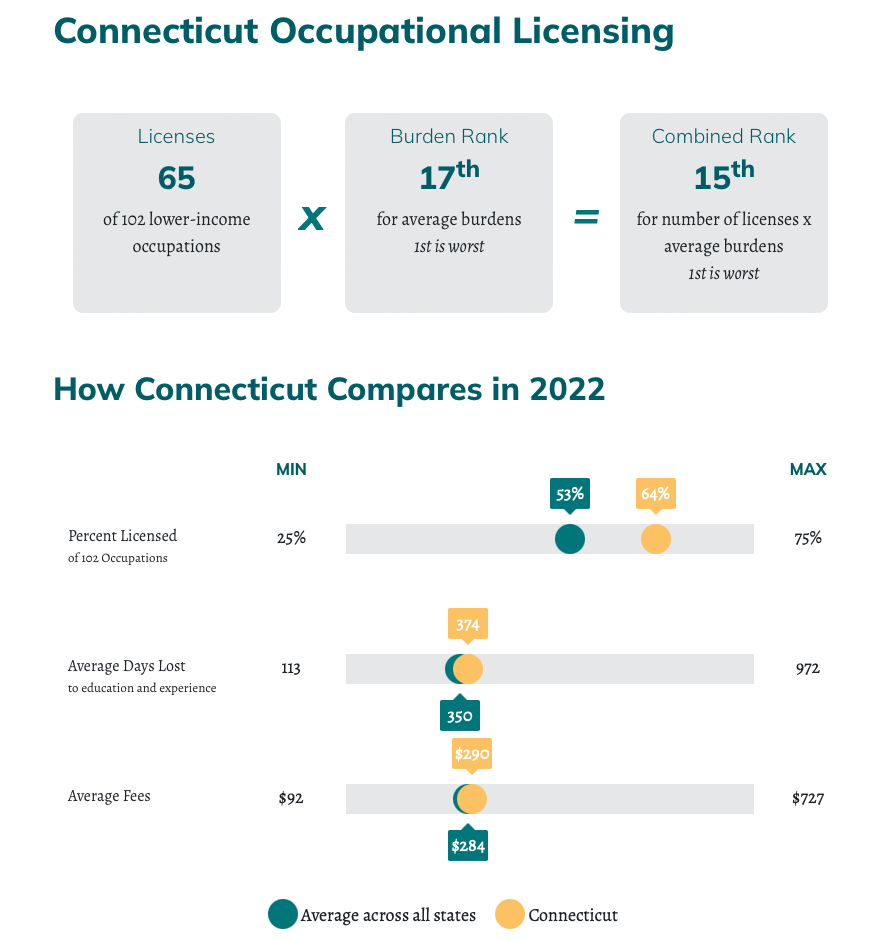 A new study shows Connecticut has become an even more burdensome state for would-be workers to obtain an occupational license for lower-income jobs.