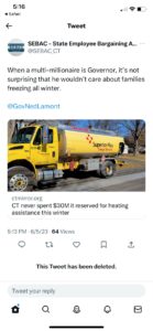 Gov. Lamont was considered “fair and honorable” when he was negotiating the group’s nearly $2 billion raise and bonus agreement in 2022 which is a far cry from calling the governor and out of touch millionaire. (See below)