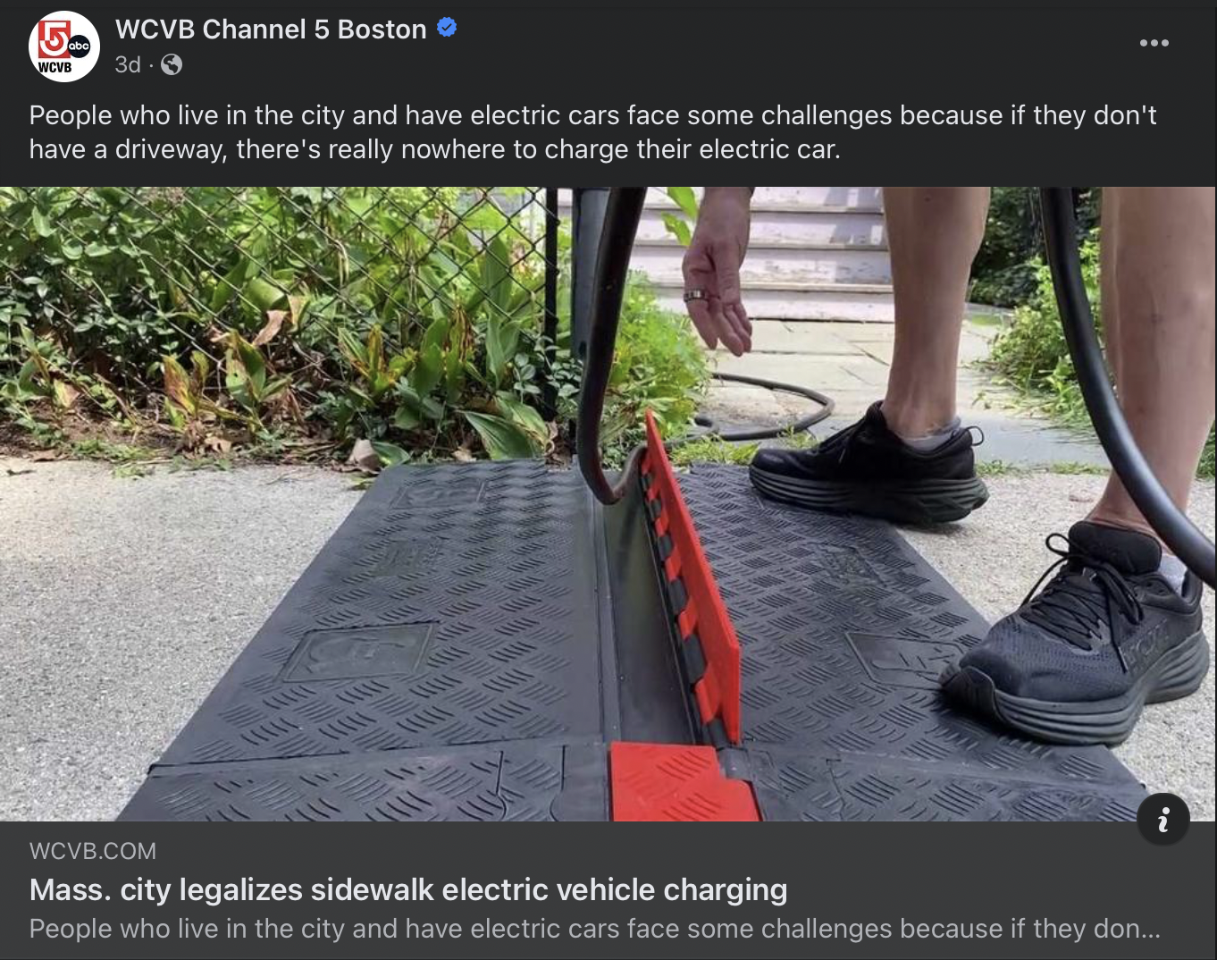Apartment dwellers in Cambridge, Mass., owning an EV but lack driveways have been struggling with where and how to charge their vehicles.