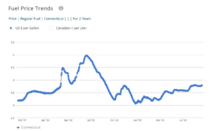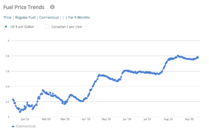 According to data gathered by the crowdsourced website GasBuddy, the average cost per gallon of gasoline in Connecticut as of Sept. 14 is $3.778. This figure reflects a decrease of $0.023 in comparison to the highest price recorded this year, which was $3.801 per gallon on August 15.