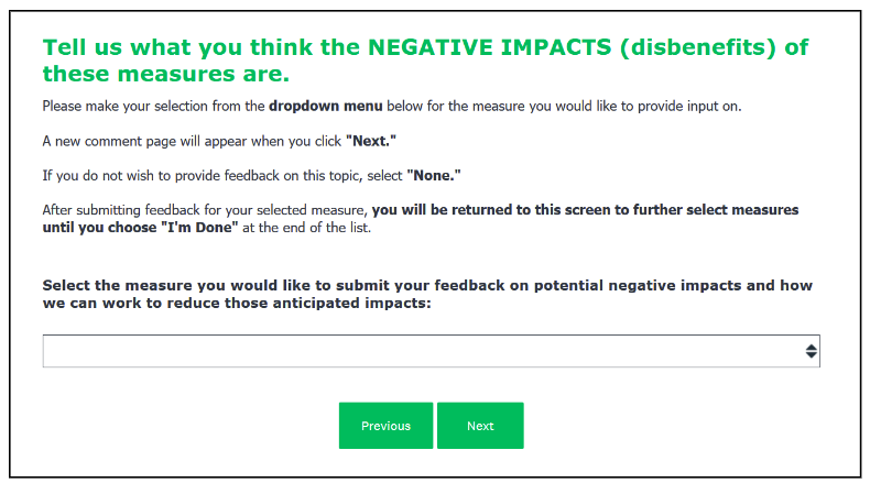 “Tell us what you think are the NEGATIVE IMPACTS (disbenefits) of these measures are.” Ah yes, “disbenefits.” Or as we plebians call them “costs.” Still, this was more than I was expecting from DEEP. Perhaps the overwhelming negative response to the gas car ban made them a little more self-reflective.