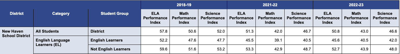 According to the latest figures from the Connecticut State Department of Education (CTDOE) students in her district have not reached the levels of proficiency in math, English language arts and science seen before the pandemic (2018-2019).